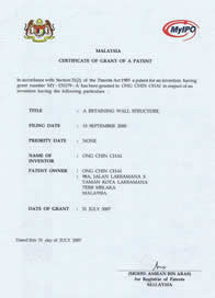 Malaysia Retainig Wall Patent