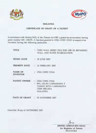 Malaysia Sheet Pile Patent